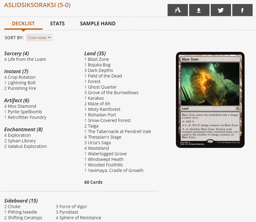 Ok, so maybe you’re sold on the card, maybe you’re not, but at the very least you’ve heard enough to need some actual lists. The crucial question for these lists is: what do we cut for Saga? To this there are more or less 2 different answers. You can cut Rishadan Port, since it is another colorless land. Or you can cut nonland threats like Sylvan Library/Valakut Exploration since Urza’s Saga increases your threat density and thus makes those kinds of threats less necessary. Below are a series of decklists to give you a sense of what people are trying (apologies for the differing formats, but people like to post their lists in different places). If necessary, open the images in a new tab to make them bigger.
