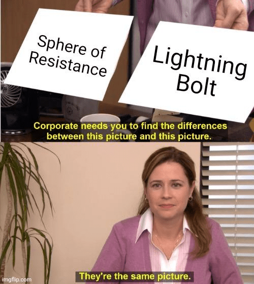 Thalia has a similar effect to Daze since her taxing ability effectively forces your opponent to “play around Daze” for every non-creature spell that they cast. Thalia is also a 2/1 creature so every free Silence that your opponent gives you also comes with a free Shock attached. Sphere of Resistance does the same taxing, but in order to capitalize on the free Silences that Sphere provides we need to have a board presence (more about this in next week’s article).