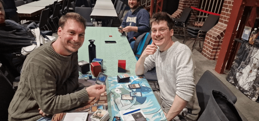 After a long drive of about 2.5 hours, I arrived in Herne. I was fully prepared and excited until I was paired against R/W Initiative in round 1, a matchup that is quite unfavorable for us. I was on the play and kept seven cards, as did my opponent. I played a Mox and a Saga, while my opponent had a turn 1 Caves of Chaos Adventurer. A start that’s usually a losing battle.
